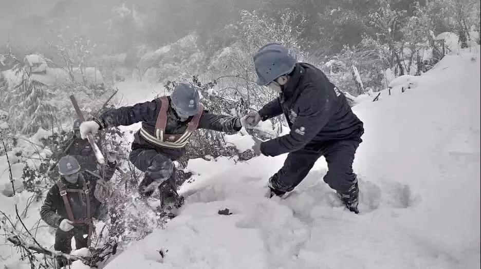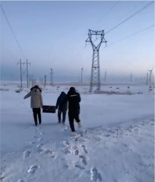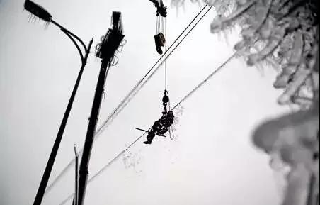 更是有很多地方,车子根本到不了。路面上到处都是冰,基层电力工人们为了赶到抢修现场只能徒步前行。