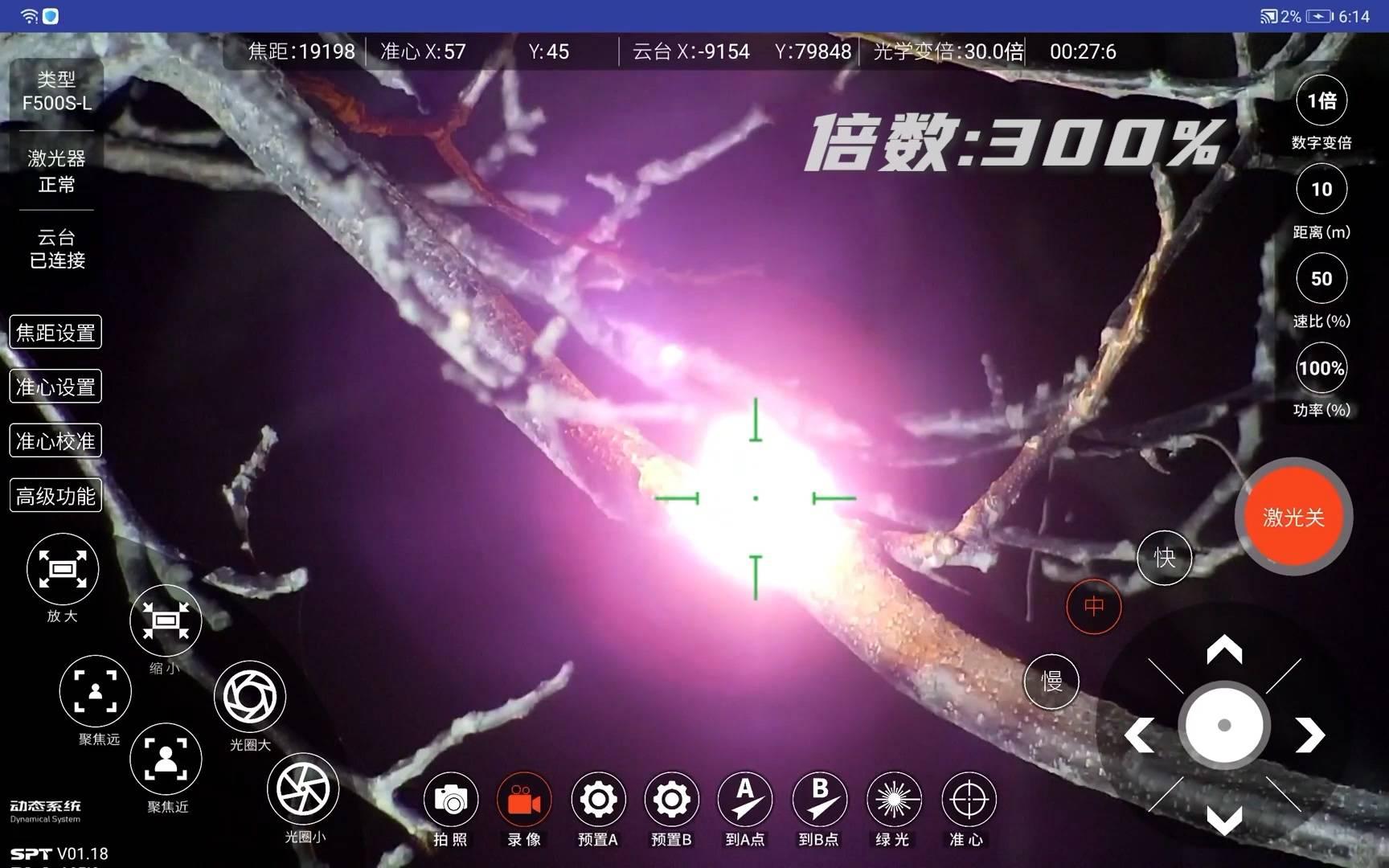 激光大炮夜间清障测试——3CM树干,有点帅!