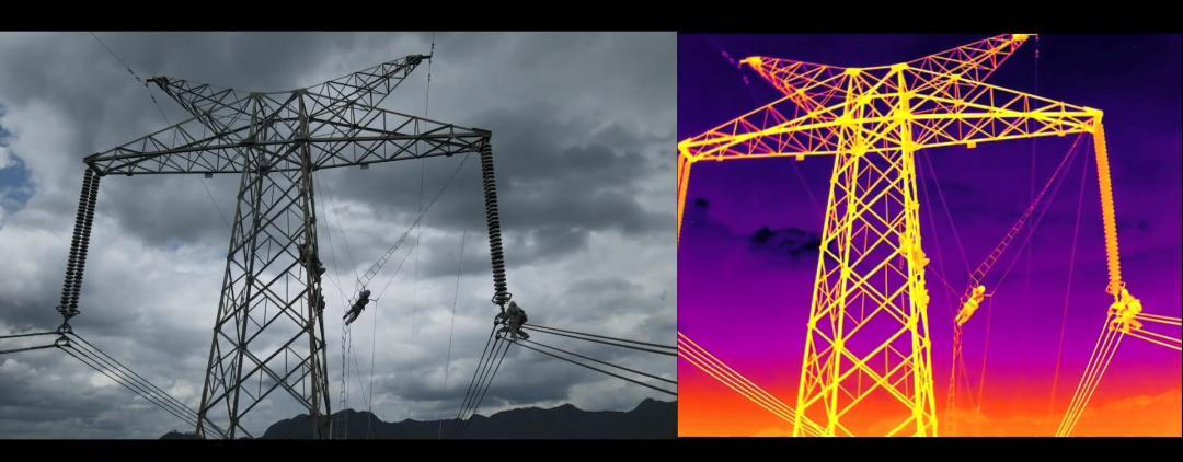 一组红外镜头记录电力工人在高压线路上开展带电作业的场景,可谓是让人震撼。