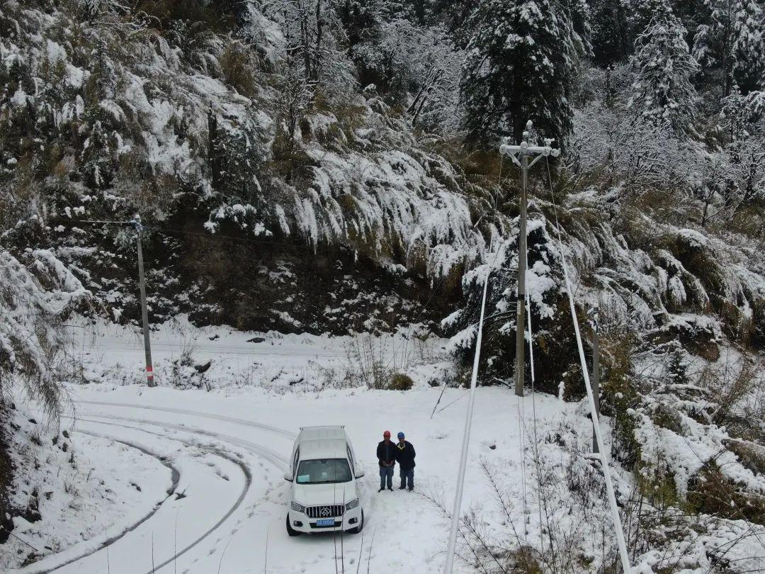 南方电网云南怒江贡山供电局茨开供电所组织工作人员开展线路巡视维护,保障雨雪天气下群众安全用电。(余彦明 摄)