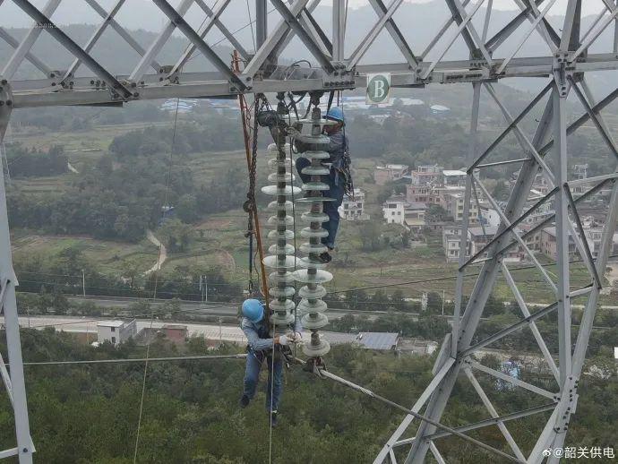 近日,南方电网广东韶关供电局输电管理所对易覆冰线路开展停电检修工作,提升电网迎峰度冬能力。(南方电网广东电网公司提供)