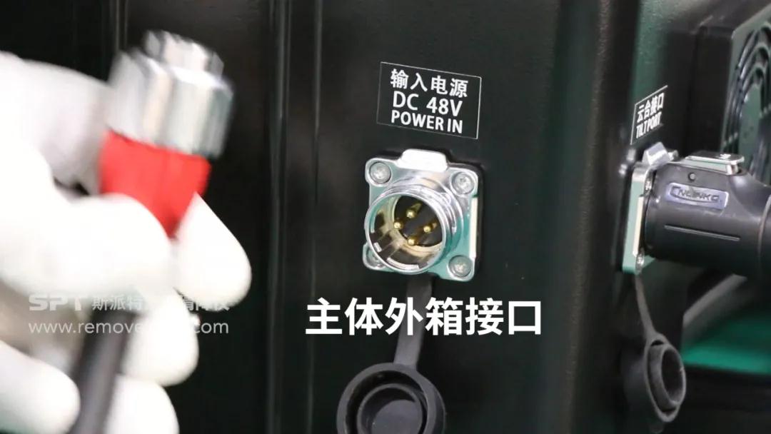 然后将云台连接线插入主机箱侧面对应接口