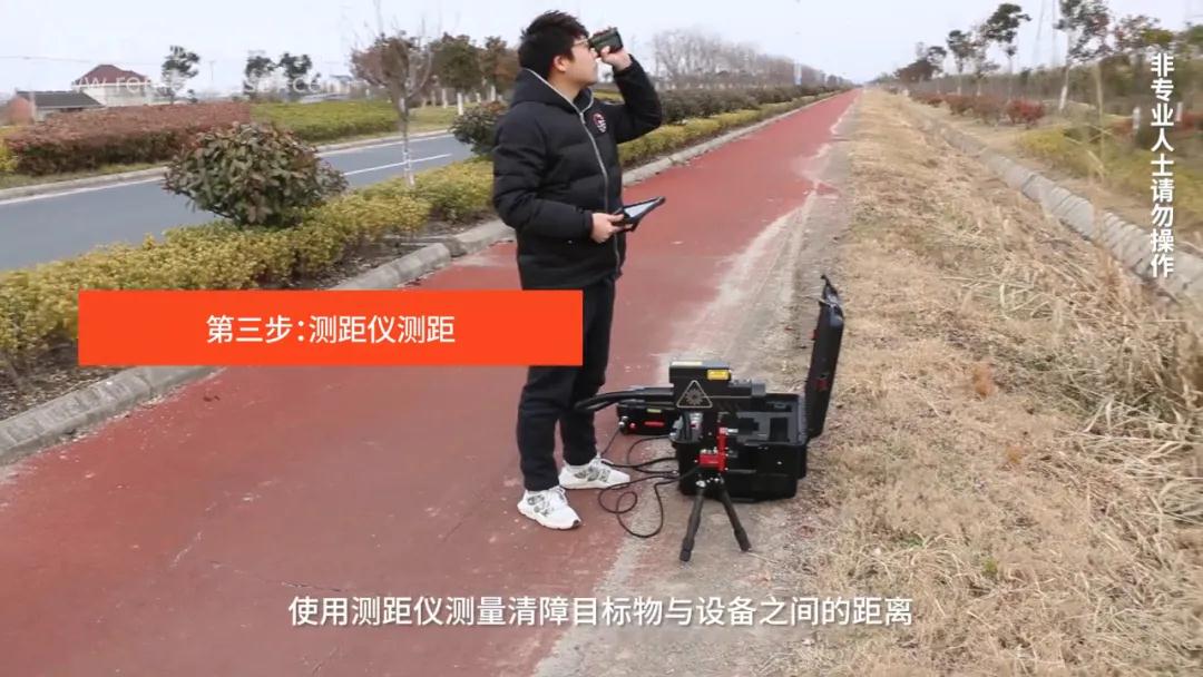 测距仪测距。首先使用测距仪测距,使用测距仪测量清障目标物与设备之间的距离