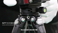 从主体外箱中取出三角架,平稳地架设在地面上。接着将云台安装到三脚架上(注意将云台底部对准支架卡槽)并固定锁紧。