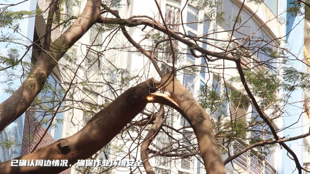 雷火电竞“炮手”首次在住宅区使用“激光大炮“进行大型树障清除作业!