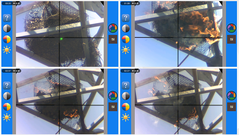 小鸟在铁塔上筑巢距离导线较近存在引起线路跳闸的风险,利用激光大炮能有效进行清除。